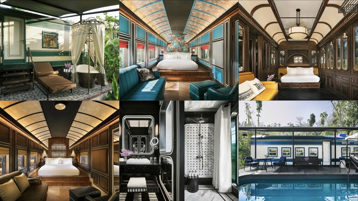 宛如老式售票亭和站長宿舍的大廳,45間客房均為廢棄火車車廂改造,每間客房不同的主題設定,採用火車車廂為靈感設計的餐廳與客房,長形客房中是從不同亞洲鐵路中汲取靈感的空間風格、大理石淋浴間、安裝在天花板上的行李架….所有客房都設有戶外浴缸和遮陽陽台,讓住客能體驗最真實的生活在大自然裡的感受,其中 11 間套房和客房設有私人室外泳池。