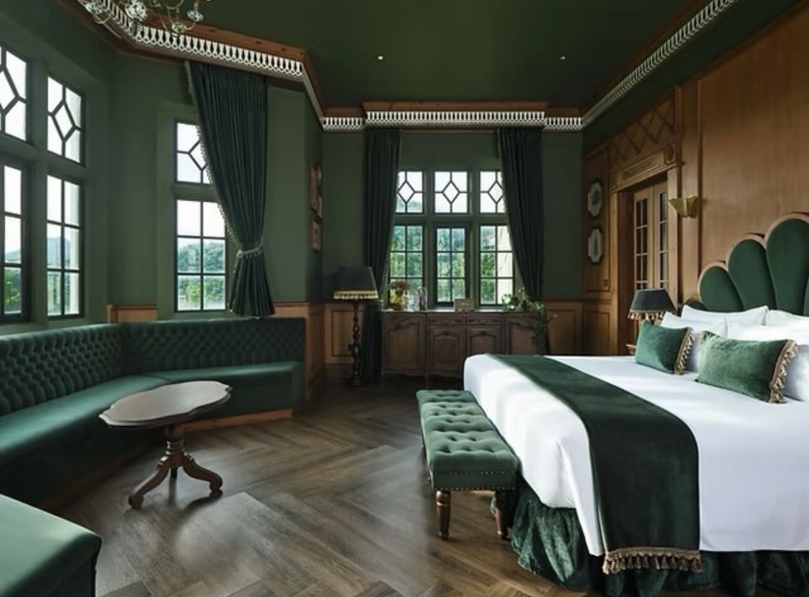 Maison Mystique 約有 17 間房間各自以不同主題呈現,像是 Botanical Obscura、Celestial Lullaby、Siren Reverie 等每間客房都繞著不同的故事為主題呈現,每間都隱含一個小故事,結合復古家具、手工細節與氛圍燈光,讓旅人不只入住,更像進入一個獨立的敘事空間。部分房型設有私人陽台與山景,讓旅人在自然與奢華間找到完美平衡。